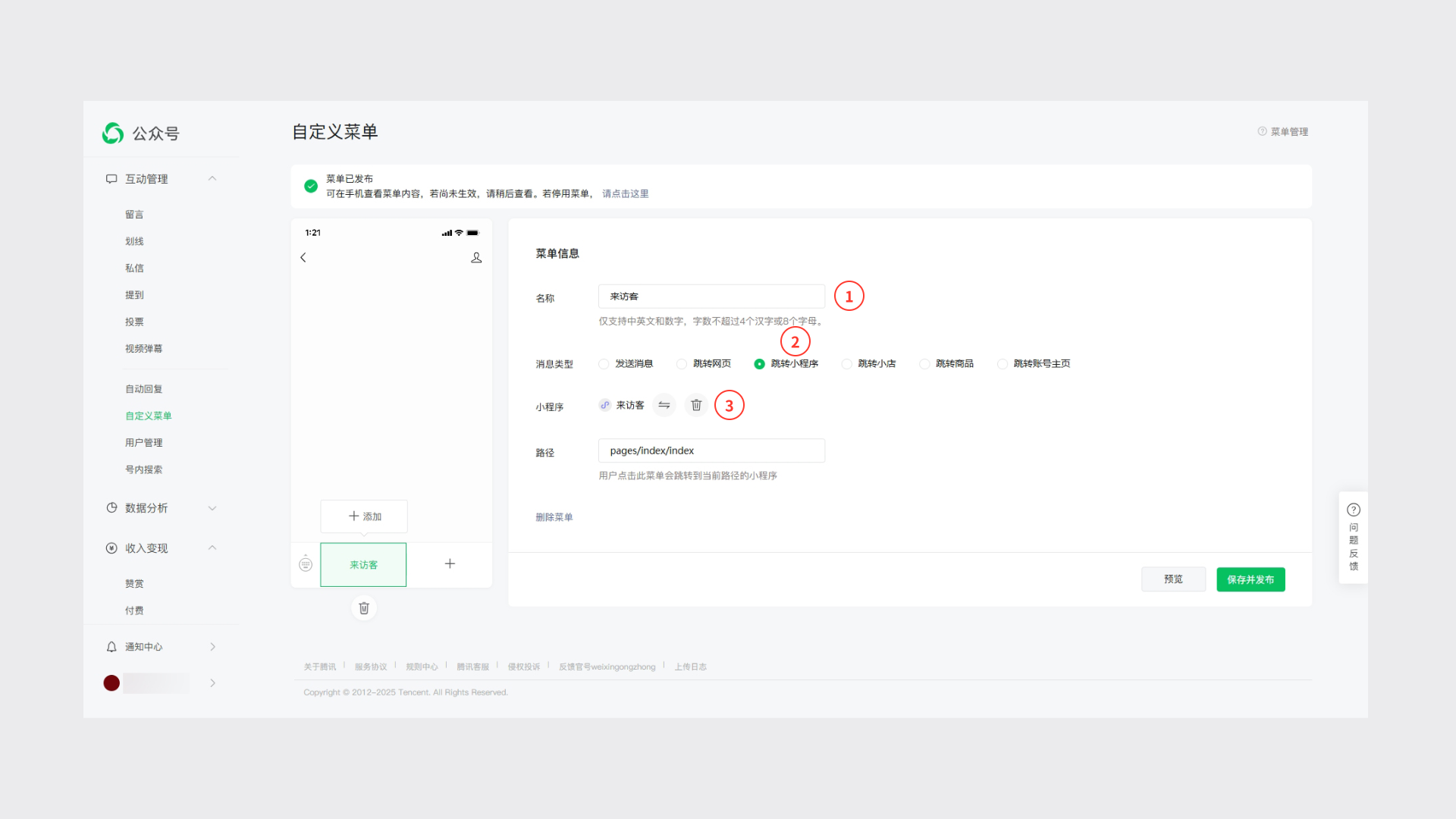第二步:设置公众号菜单关联小程序