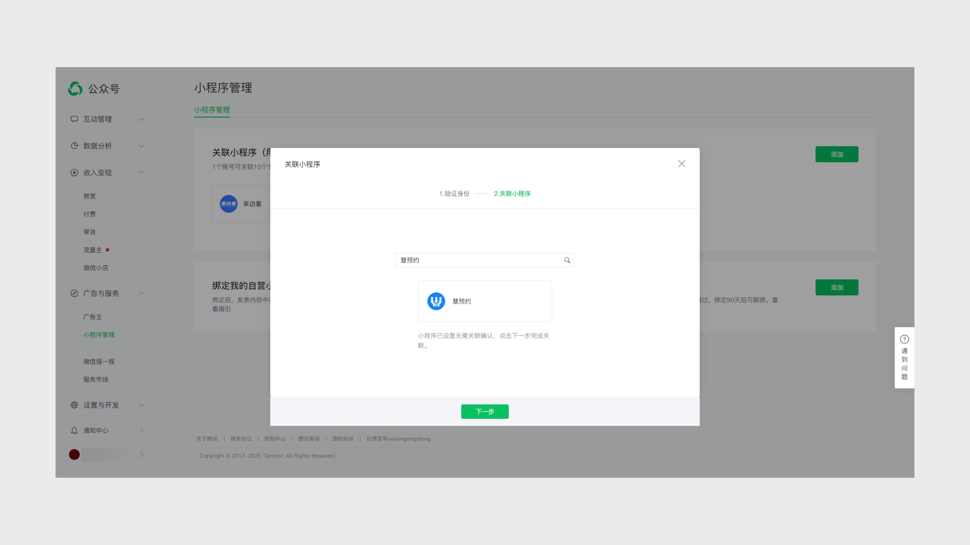 管理员扫码验证后添加关联小程序